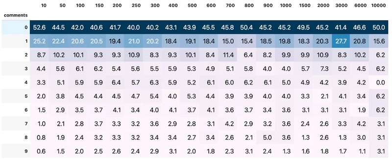 象徴的なのは、6,000行規模のPRが0件コメントで終わる確率は、50行未満のPRが0件コメントで終わる確率と同程度だった点です。